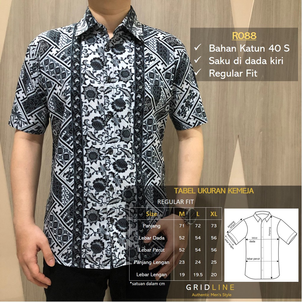 Name: [gridline - R088] Kemeja Batik Pria Katun Lengan Pendek Regular Abu Putih Hitam Pastel