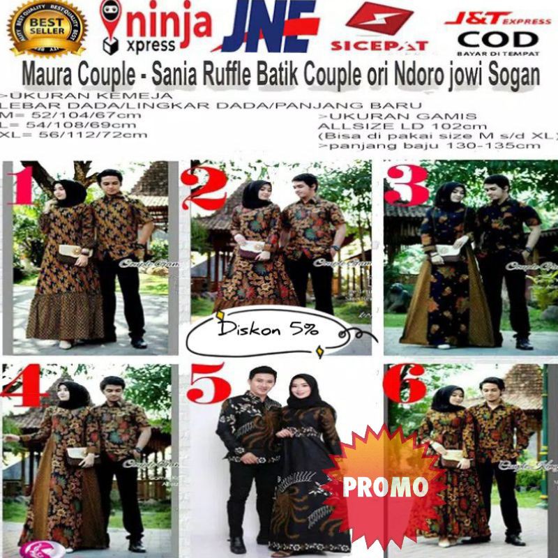 Name: Maura Couple Sania Ruffle Batik Couple Ori Ndoro Jowi Sogan Size M L Xl