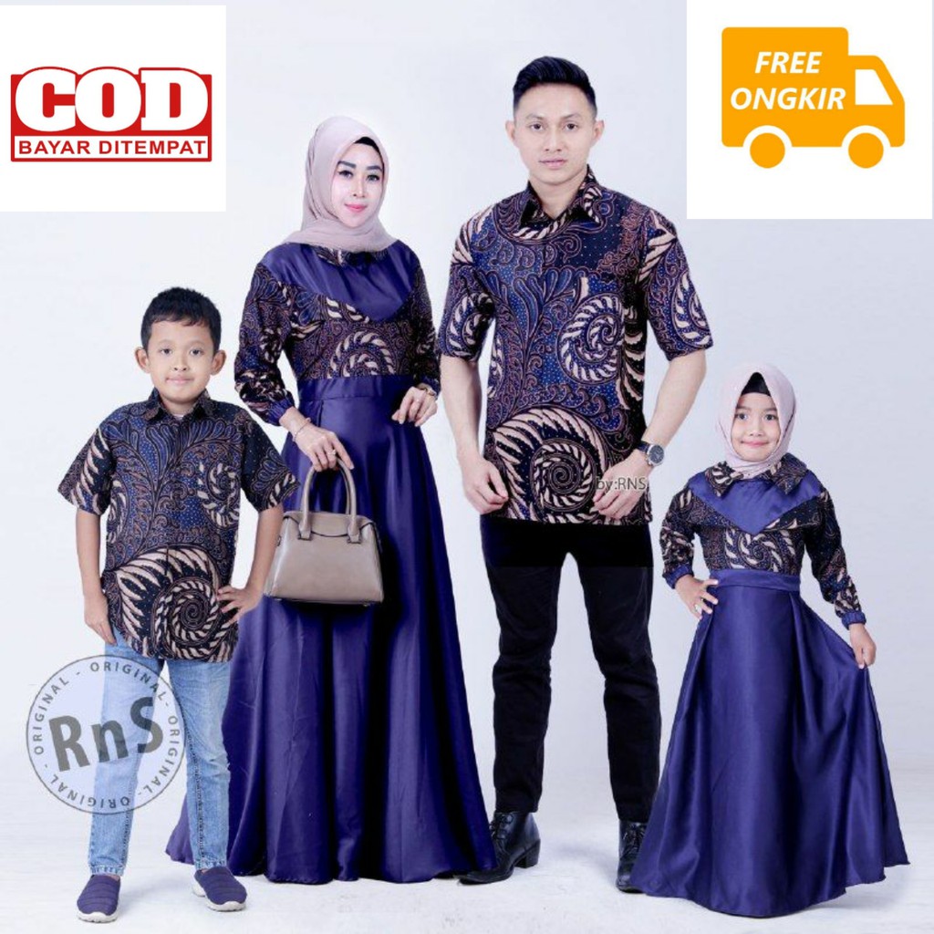 Model : Couple Batik Keluarga yang terdiri dari gamis ibu,gamis anak, kemeja lengan pendek anak, dan kemeja lengan panjang ayah.