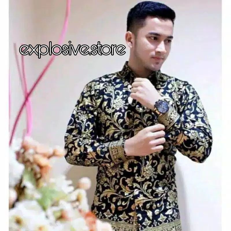 Name: Kemeja Batik Prada Emas Kembang Gede B153 Hitam | Bakung M L Xl Xxl