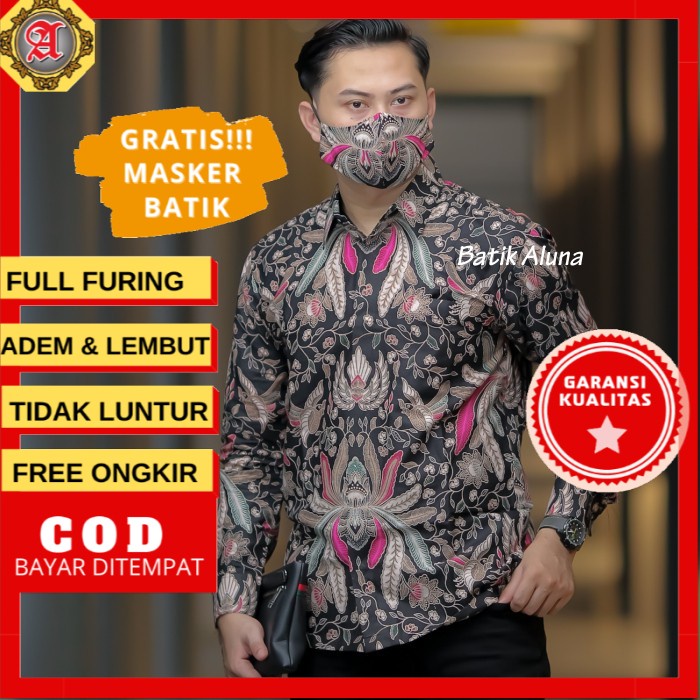 BATIK PRIA PREMIUM LENGAN PANJANG KODE PRODUK PCW 014 FREE MASKER
