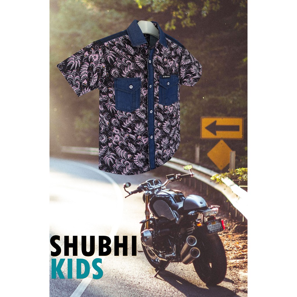 Name: Shubhikids Kemeja Anak Laki-laki Model Batik Jeans Bunga Merah Lengan Pendek Usia 1-12 Tahun