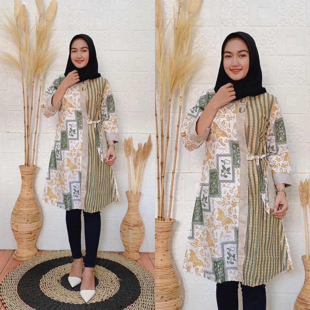 Termurah Pakaian W di Kabupaten Lampung Selatan Atasan Tunik Batik Print Asj Sa Termurah Dan Terlaris Motif Bunga Kupu Hijau Batik Pekalongan dari Tidak Ada Merek Kota Pekalongan